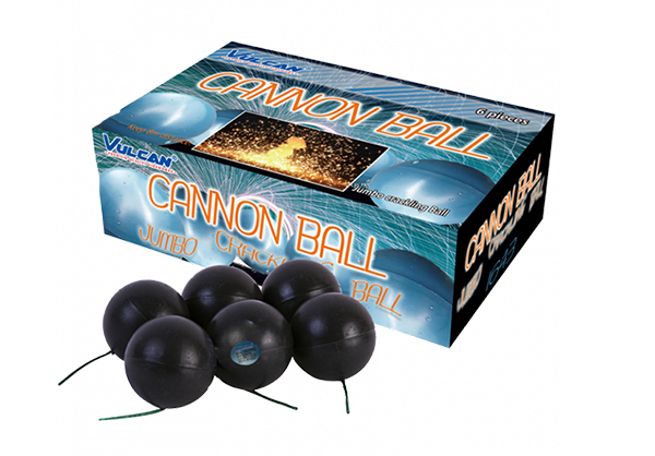 Cannon Ball is de grote broer van de traditionele knetterbal en per 6 verpakt Crackling Balls in XXL formaat. Zeer grote knetterballen, zeer groot effect. Gruwelijk intensieve explosie van knetters en zilveren sterren. WOW-Factor is zeker aanwezig bij dit vuurwerkproduct. Enorm geliefd bij jeugdige vuurwerkliefhebbers.