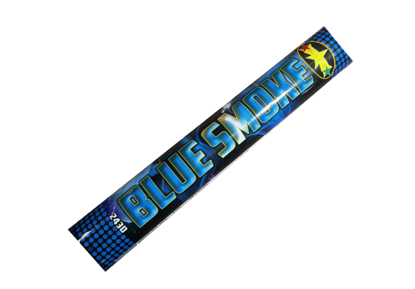 De blauwe rookbom  geeft mooie, volle, groene rook. Rookstaaf met lont. Ontsteking na +/- 2 seconden. Blauwe rookbom met brandtijd van 60 seconden.